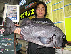 12月20日、田代さんは、底物釣りでイシダイ65.5cm4.6kgを見事捕獲!! |