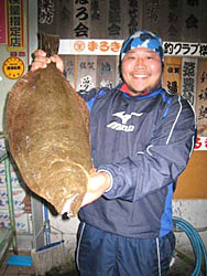 12月23日、常連の山本さんは、アジのぶっこみ釣りでヒラメ84cm7kg、スズキ80cm3.5kgの大物を見事ゲット!すごい!!