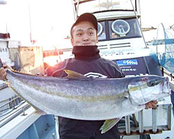 福岡の小谷さんは、ヒラマサ(ルアーでヒット)104cmを見事にGET! |