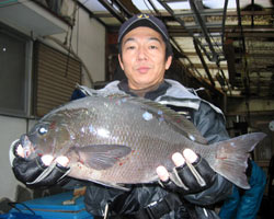 1月28日、池田さんは、船釣りで大型クロ50cm1.5kgを見事にGET! |