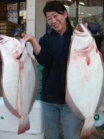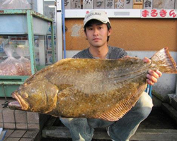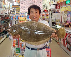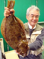 9月25日、内田さんは船釣りで74.6cm 4kgの大型ヒラメをゲットしました。 |