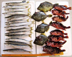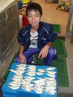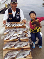 9月27日、福岡市の熱田さん親子は、ダゴチン釣りでチヌやメイタ20匹、カレイやアジ他を、シャコ・サナギ・コーンを餌に好釣果。 |