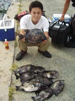 9月28日、NEXTフィッシングクラブの長田さんはジンガサをエサにしてイシガキダイ10匹の爆釣! |
