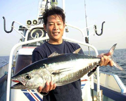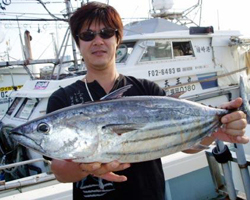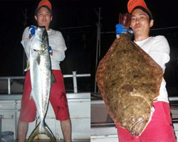 9月26日、ジギング挑戦2回目のルミカスタッフ菅は午前8時頃、小呂島周辺で5.5kgのヒラメをゲット!とんでもないビギナーズラックを起こした。午後2時頃には壱岐の名島沖で0.9kgのタカバをゲット。さらに午後4時には玄界島沖のキャスティングで8.5kgのヒラマサをゲット。まさにミラクルである。 |