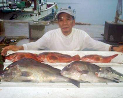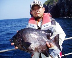 9月30日、長崎市西山町の副島さんは、コロダイ70cm3.5kg〜35cm1kgを3匹、アカハタ1.3kg〜0.4kgを3匹の釣果です |