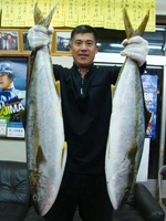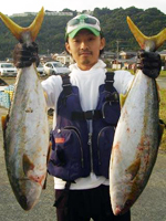 10月27日、岡元さんはヒラマサ63cm2.5kg、箭内さんはスズキ76cm3.45kg、マダイやヤズを手中にしました! |