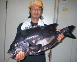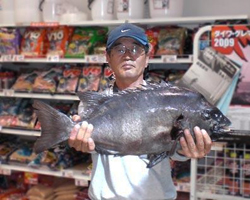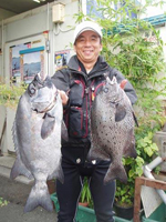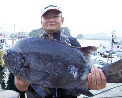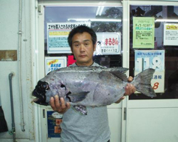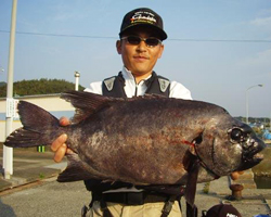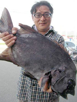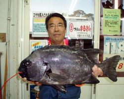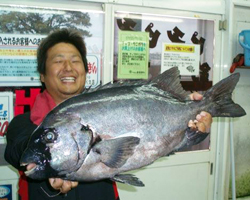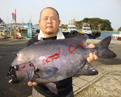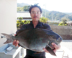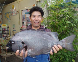 10月23日、町田さんは、底物釣りでアオブダイ58cm3.4kgを手中にしました。 |