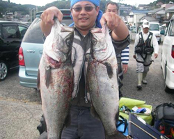 10月5日、秀島さんと辻さんは、ヒラマサやスズキ、イサキをGET! |