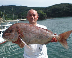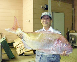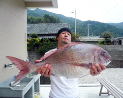 10月4日、立石さんは、カゴ釣りで大型マダイ84cm7.3kgを見事仕留めました!! |
