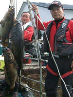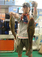 9月26日、チ−ムHOSPITALご一行みち丸初乗船です。潮が動かず、また時化の中、船酔いをしながら頑張っていただきました。ヒラマサ8kg以上を5匹、カンパチ1匹、ヒラメ1匹、マハタ2匹、巨大アラカブ1匹と、フックアウトを5回でした。 |