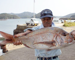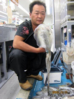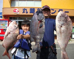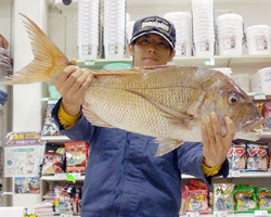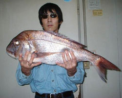 10月4日、岩井さんは、マダイ狙いで夜釣りに挑戦しマダイ68cm3.5kgなどをボイル餌のカゴ仕掛けで見事釣り上げました。 |