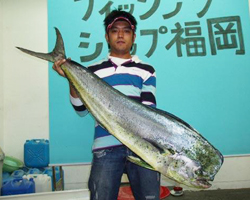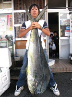 10月3日、松尾さんは、ルアー釣りでシイラ148cm20kgを捕獲!大物です! |