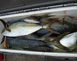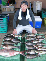 0月4日、お客さんは、ブリ、サワラ、ネリゴ、ヤズなどクーラーいっぱい釣り上げました。 |