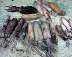 10月5日エギングの乗合で出港。雨が降って風が強いとエギングは厳しいですが、風裏のポイントを周って、やっと20匹程釣れました。ポイントによっては一回り大きい花イカが連続ヒット!雨の中ごくろうさまでした 。 |