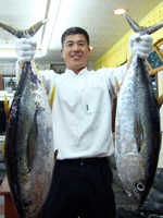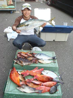 9月27日のお客さんはヒラマサ7〜5kgを9匹、ブリ3kgを4匹、サワラを4匹と大漁だった。 |