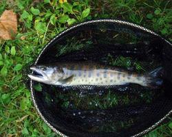 9月29日、遠賀川の河口堰に釣行した藤村さんは、朝10時半ごろに65cmのシーバスをゲット!ヒットルアーはTDソルトバイブ。 |