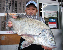 10月6日、前田さんは、ボートにてチヌ47cm1.4kgを手中にしました。 |