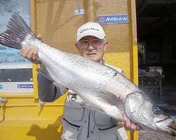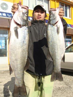 10月4日、平川さんはスズキ69cm2.15kg、三井所さんもスズキをゲットしました。. |