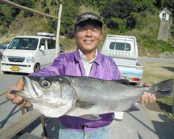 10月28日、店長の長友さんは、マルスズキ70cm3kgを手中にしました。 |