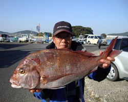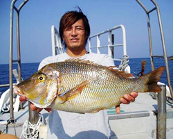 10月4日、藤瀬さんは、マダイ76cm5.3kgをGETしました。 |