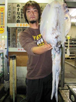10月29日、生田さんは、97cm19.9kgのイカを見事にGET! |