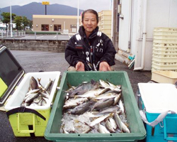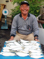 11月1日、川人さんは、大淀川河口で降雨の中25cmクラスの良型サッパを総数100匹以上もサビキ釣りでゲット! |