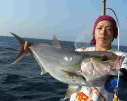 9月28日、グラマスさんは、ジギングでカンパチ3kg〜、アカヤガラを手中にしました。 |