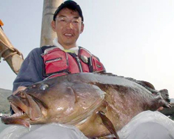 10月1日、坂本さん(鶴亀石鯛)は、底物釣りでアラ101cm16.5kgを見事にゲット!! |
