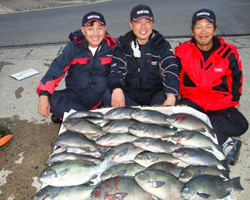 11月1日、西さんたち一行は、クロ40cmオーバー3匹を釣り上げました。 |