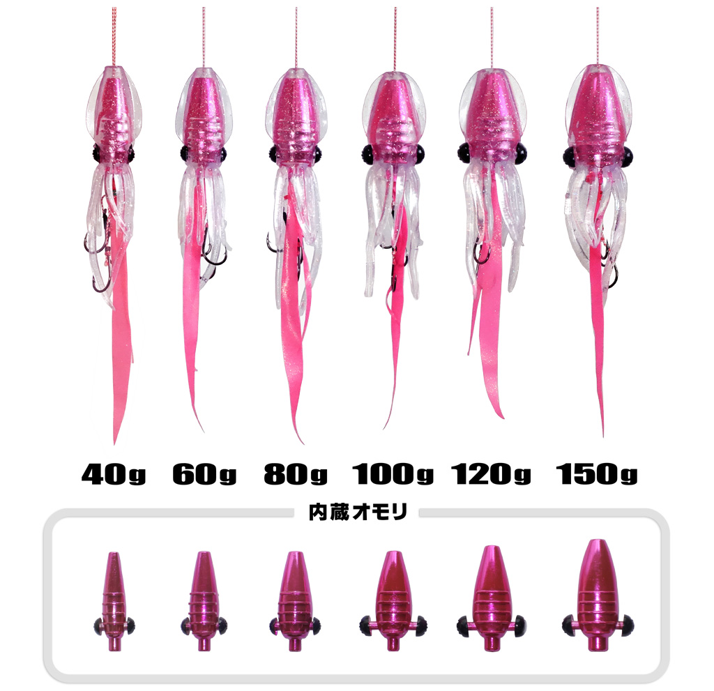 4内蔵シンカーは 40g 60g 80g 100g 120g 150g の6サイズ