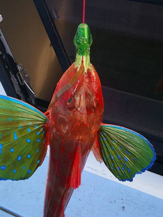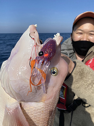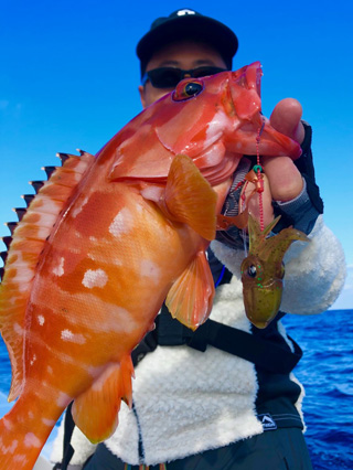 プニラバTGはタイラバとして開発されましたが、リアルなイカの形をしているため表層から中層、ボトムまで様々な高級ゲストがヒットします。とくにロックフィッシュはワームへの反応がいいので爆釣が期待できます。