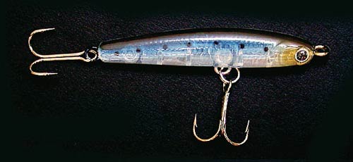 トレブルフックが腹部とテールの2ヶ所についた本命ルアーです。4~7㎝で重さ2~4gと軽いものの、ロッド次第では20~30mくらい飛ばすことができます。小さくて比重がある方が飛距離がでますが、夜釣りをする場合は、超スローリトリーブできるフローティングかサスペンドタイプを使います。