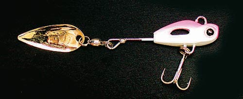 スピナーとバイブレーションの合体タイプ。バス、シーバスから青物までよく効くルアーです。メバル釣りでも実力を発揮して人気急上昇中。小さいのに飛びやすくてクルクルとローリングするのでアピール力抜群です。