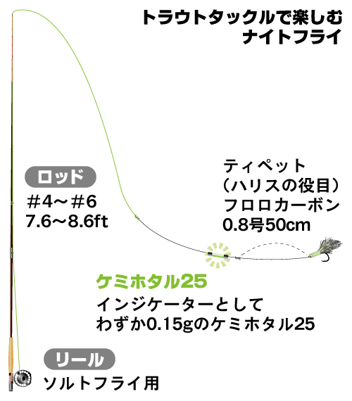 フライラインは淡水用を使って全然問題ない。シンクレートはS(Ⅰ)をメインにするが、メバルの活性が高く、上ずっているときにはフローティングも使える。