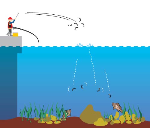 釣れ始めたら追加は厳禁。喰いが一段落したら、シャク一杯づつ投入して喰い気を保つ