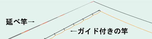 狭いヒットゾーンに正確にワームを投入するためにも、延べ竿が有利です。