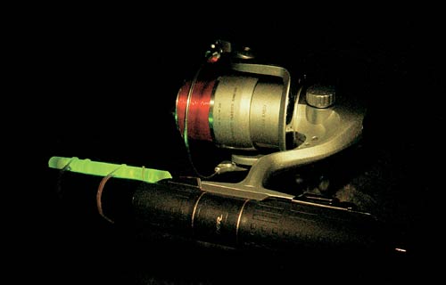イカが引いたときには、ラインを送り出してしのぐため、200mほど巻ける中型のスピニングリールを使ってください。ドラグを締め過ぎるとイカが抵抗を感じて放してしまい、逆に弛いと遠くまで行き過ぎて、ヤエンを入れる時間がなくなります。ドラグの微調整が可能で、最大限まで弛めたときに、ラインがスムースに出て行くリールを選んでください。あわてずにドラグ調整できるリヤドラグ式、またはレバーブレーキ式をお薦めします。