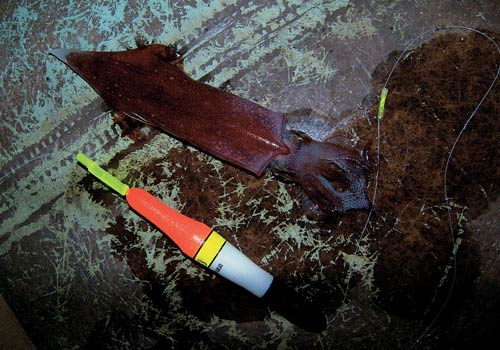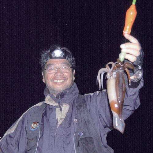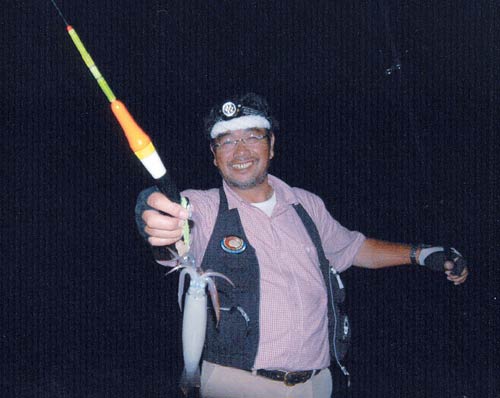 さらに昨年まで試行錯誤を繰り返しテストしていたイカバージョンの ハンマーフロートF型 の試作品でイカ釣りを重ねるたびに釣果がアップ。完成品が出回った今では、すっかりイカ釣りにはまっている。
