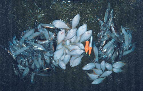 生食での評価は今ひとつだが、総菜加工用に大量に流通する重要産業種。日中は深海に生息するが、夜間は海面近くまで浮上。