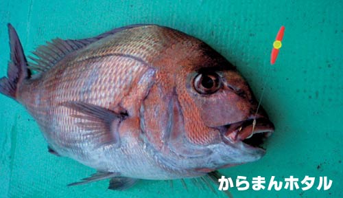 マダイはマキエを食うとき激しく上下に反転するので、エサ取りやグレはおびえていなくなることが多い。これを目安に身構えておけば遅れを取ることも少ないだろう。