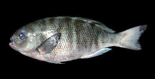 グレの仲間は約20種であまり多い方ではありません。世界中の温帯から熱帯にかけての浅海域に Blue Eye Perch( 青い眼のパーチ )、Green Perch( 緑のパーチ )、Blue Fish( 青い魚 )、Black Drummer( 黒い太鼓腹 )などと呼ばれる近似種がいます。どれも眼の色や体色に着目した命名です。