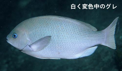 グレには変色能力があり、気分次第で体色が変わります。同一種内でありながら個体差が大きいため、一部の地域ではオナガ( 標準和名クロメジナ )はグレ( メジナ )と同種だと思われていました。そのため60年以上も前からオナガとグレを区別していた地域と、ここ20年ほどで区別するようになった地域があります。