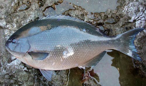 体長約50㎝まで成長。グレやオナガよりもボッテリとした体型で、上唇が厚く尖っています。藻食性のため、口はやや下向きについており、鮎のように縄張り意識がつよく、群れを作らずに単独生活を好みます。そのため釣れても単発であとが続きません。引きは鈍重で食味は大味だとされます。