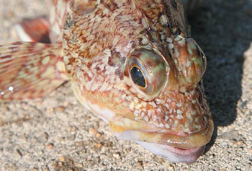 カサゴは水深100mまでの岩礁帯に棲む魚で、エビ・カニなどの甲殻類やゴカイ、小魚をエサにしています。昼間は海底の岩陰に潜んでいるため、ピンポイントで目の前にエサがプレゼンされないと喰いませんが、夜になれば出歩いて活発に補食するので、楽に釣ることができます。