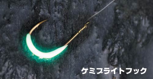 鈎は ケミブライトフックチヌ鈎3号 がよいのだが、フグが多いときは簡単に鈎を噛み切られる。そんなときは ケミブライトフック真鯛鈎9号 に変更するといい。