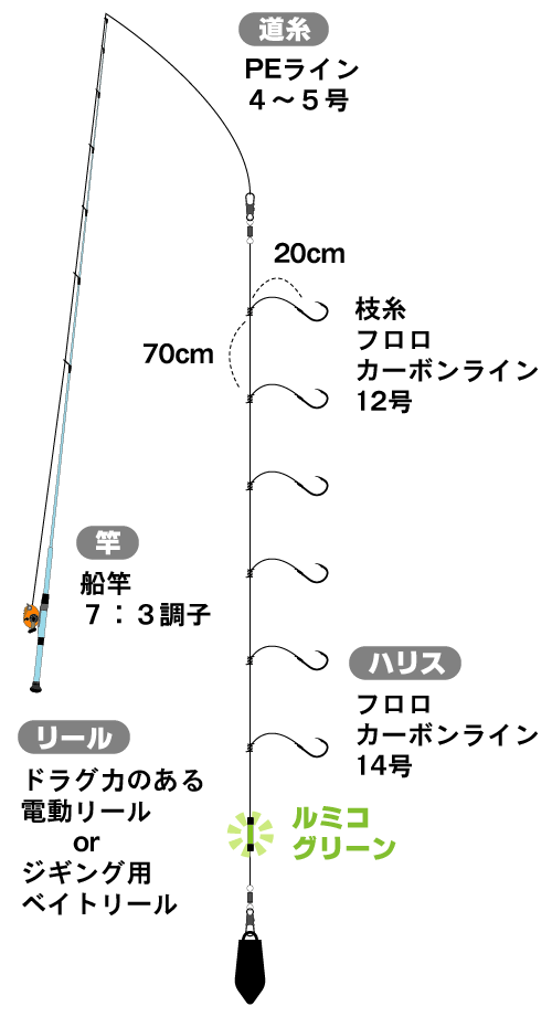 ハタやアラなど根魚を狙う場合は海底から1m以内に仕掛けがくるようにタナを調整しますが、荒い根の場合や船を流しながらの釣りの場合は根掛かりを起こしやすく、ヒットしてからでも根に潜り込まれる事があります。