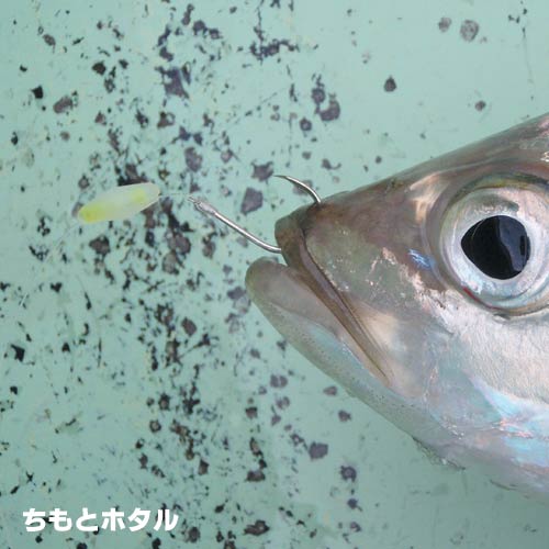 短ハリスの欠点は、鈎がかりしたアジの動きが制限され、その場でクルクル泳ぐので尾巻きが多くなることです。尾巻きすれば取りはずしに時間がかかる上、身割れして食味も下がってしまいます。