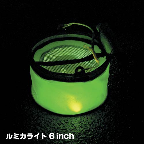 泳がせ釣りで餌にするアジはフタを開けると驚いて跳び出してしまう。これを防ぐのがルミカライト6inch。バケツの中に放り込んでおくと中がよく見えてアジを取り出しやすいだけでなくビックリ跳び出しも防いでくれる。