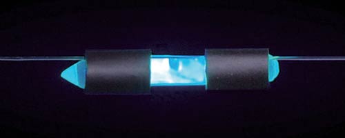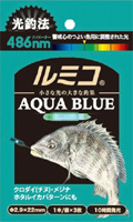 ルミコブルー または ちもとホタル 。ちもとホタル は世界最小の集魚用発光体。沿岸の発光生物の小さな光を演出します。淡く長時間発光する ルミコブルー は、沖合いからの潮が通すところ、または澄み潮のときに優れた誘引効果を発揮します。