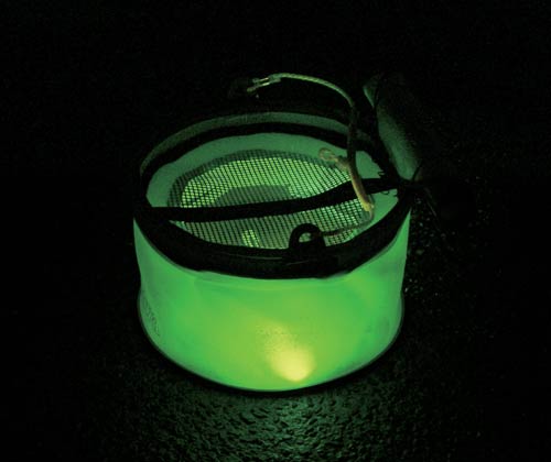 魚の視界は色覚はあるものの視力は弱く、漆黒の海底でボンヤリと映る「 ちもとホタル 」の輝きがエサの存在をひと際アピールしてくれる。しかも、取り付け用の黒いゴム管によって細かに光量を調節できるので、好みの明るさでスズキの食い気へアプローチすることが可能である ( これホンマに効きまんねんわ ) 。